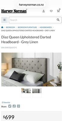 New 'Diaz' grey queen headboard ex Harvey Norman